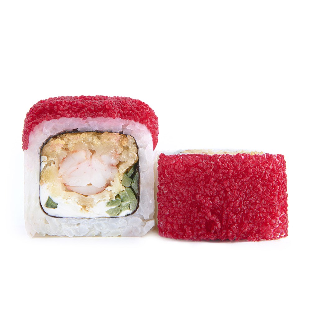 Рис, Норри, Сыр сливочный, Огурец, Икра масаго, Креветка темпура.