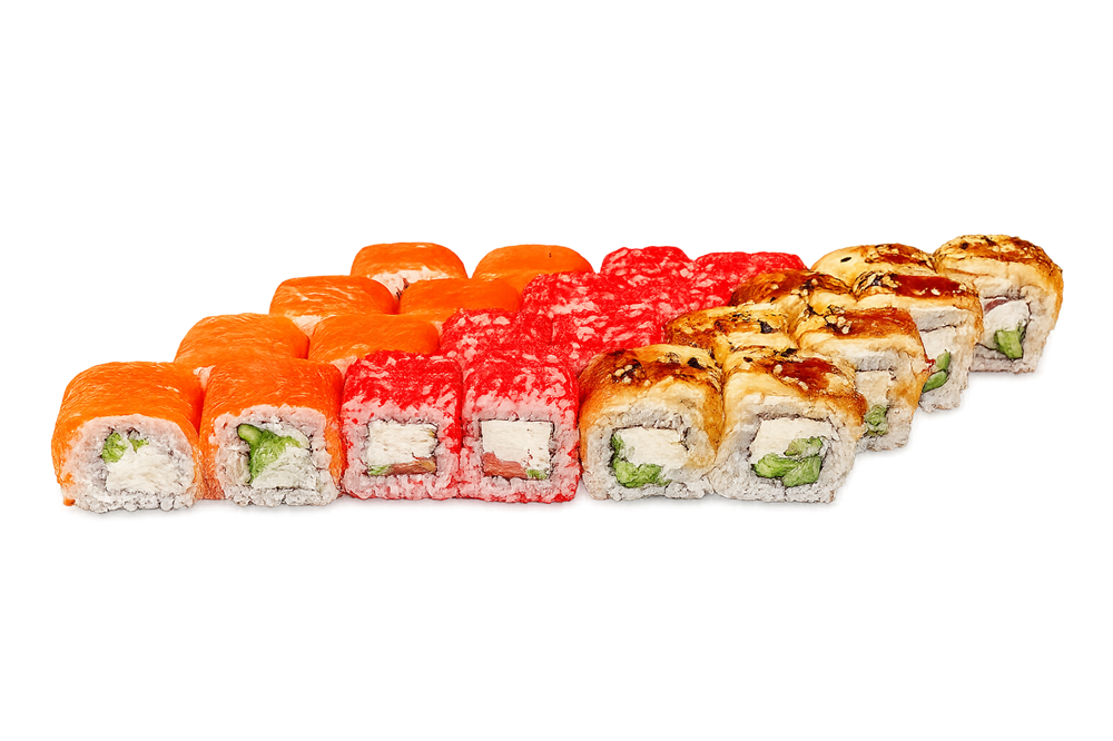 Филадельфия с лососем, Филадельфия с угрем, Филадельфия в тобике.