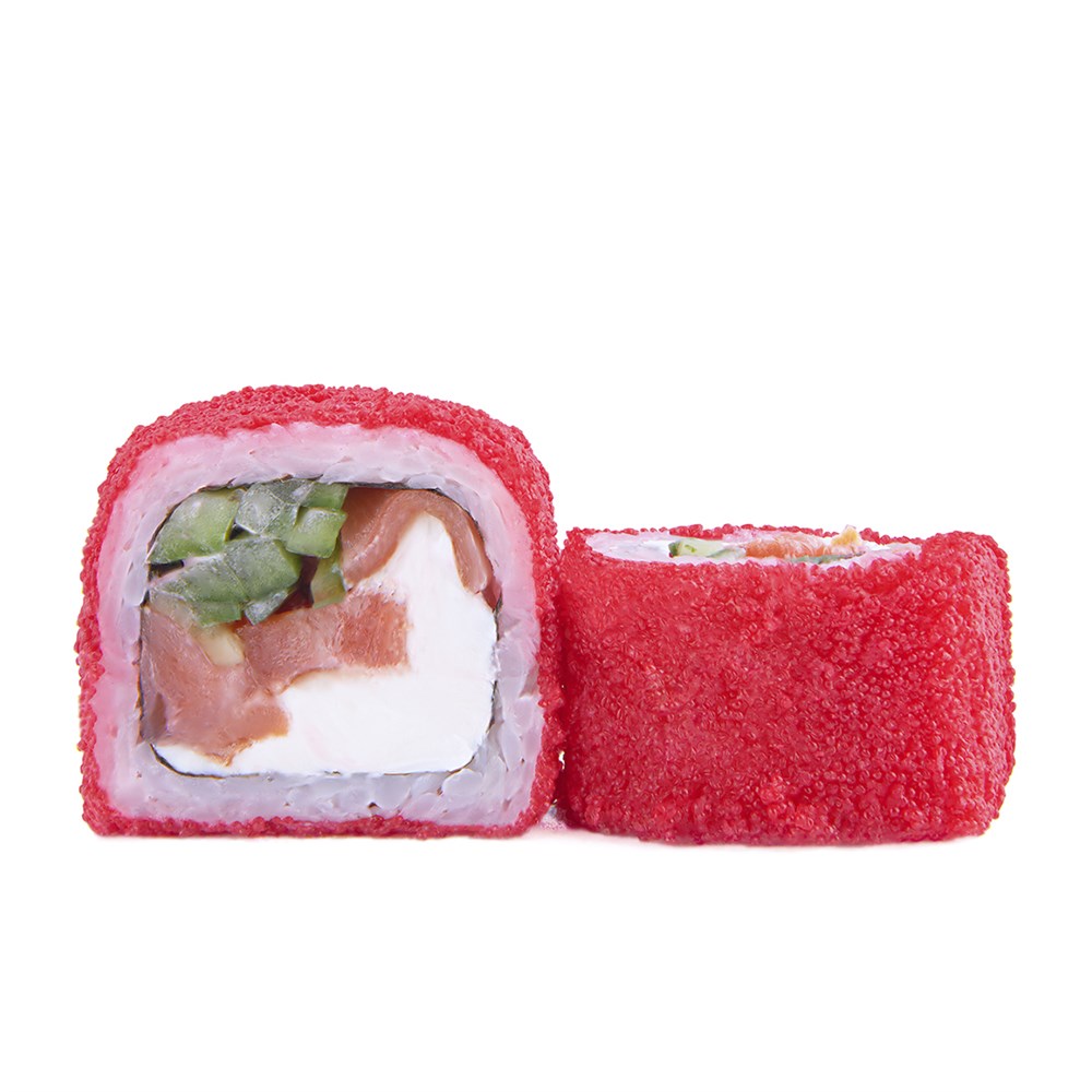 Рис, Норри, Сыр сливочный, Лосось копченый, Огурец, Икра масаго.