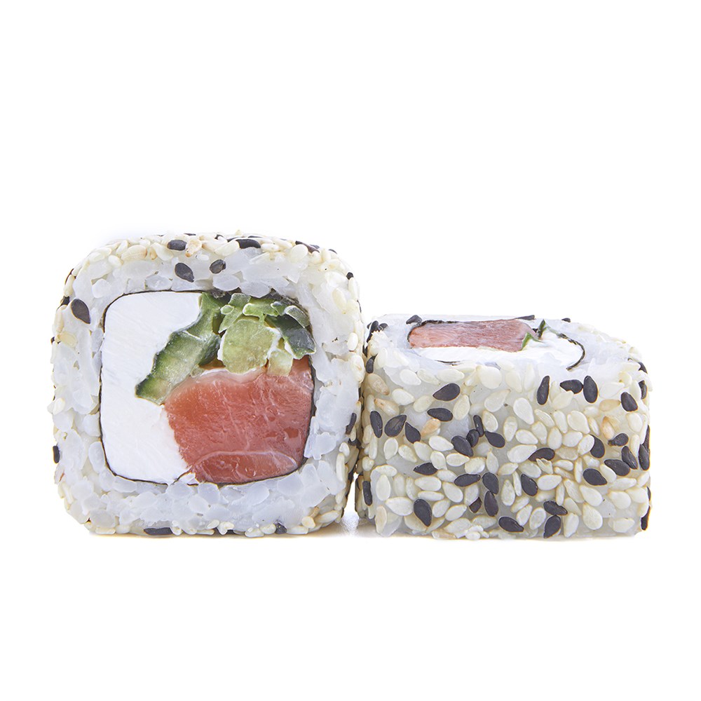 Рис, Норри, Сыр сливочный, Лосось копченый, Огурец, Икра масаго.