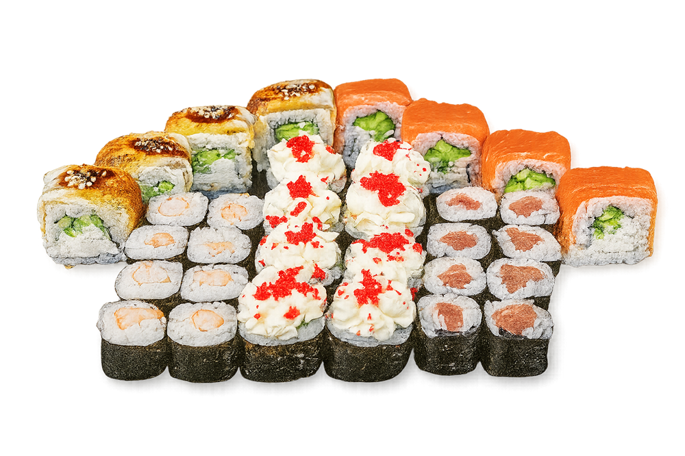Маки с тунцом, Маки с Тигровой креветкой, Филадельфия Микс, Футомаки.