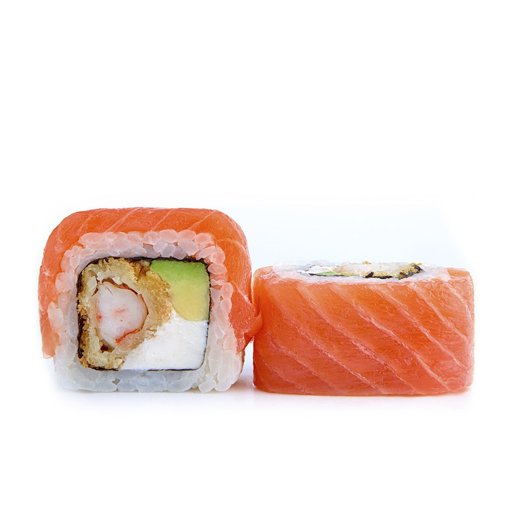 Рис, Норри, Сыр сливочный, Креветка темпура, Авокадо, Лосось с/с.