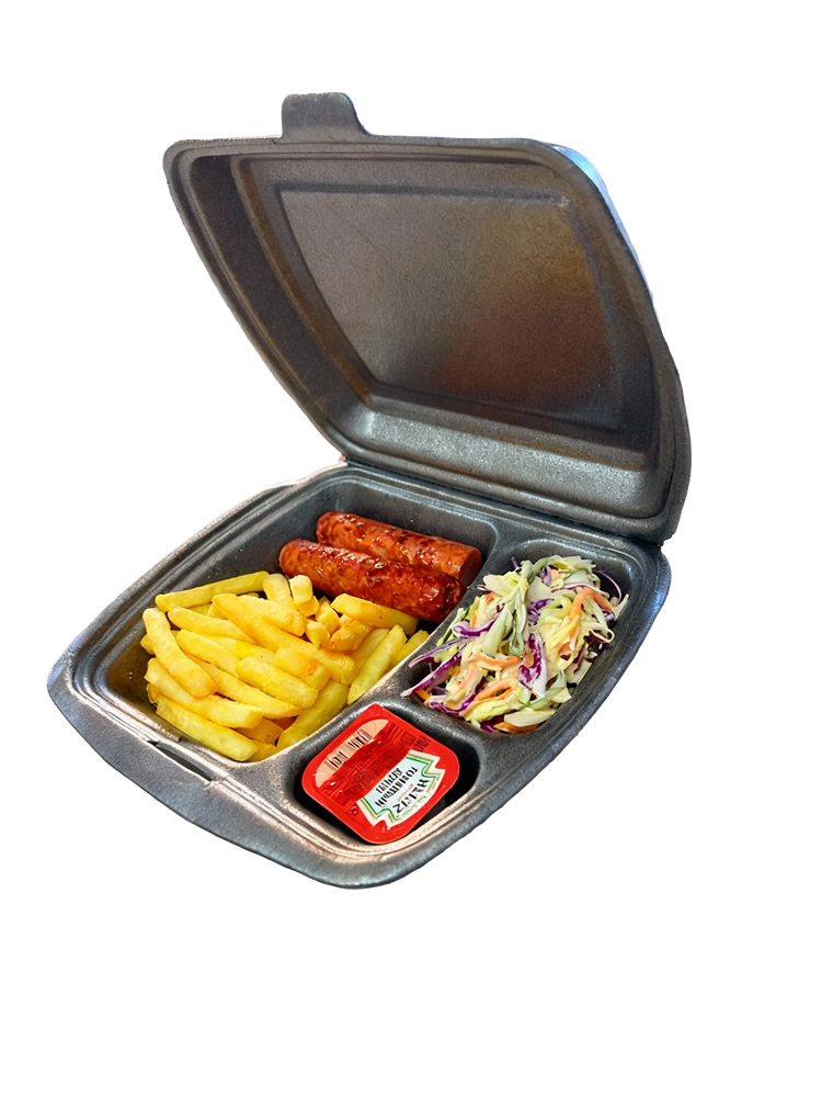 Картофель фри, Колбаски фритюр 2шт., Салат Коул Слоу, Кетчуп 1шт.