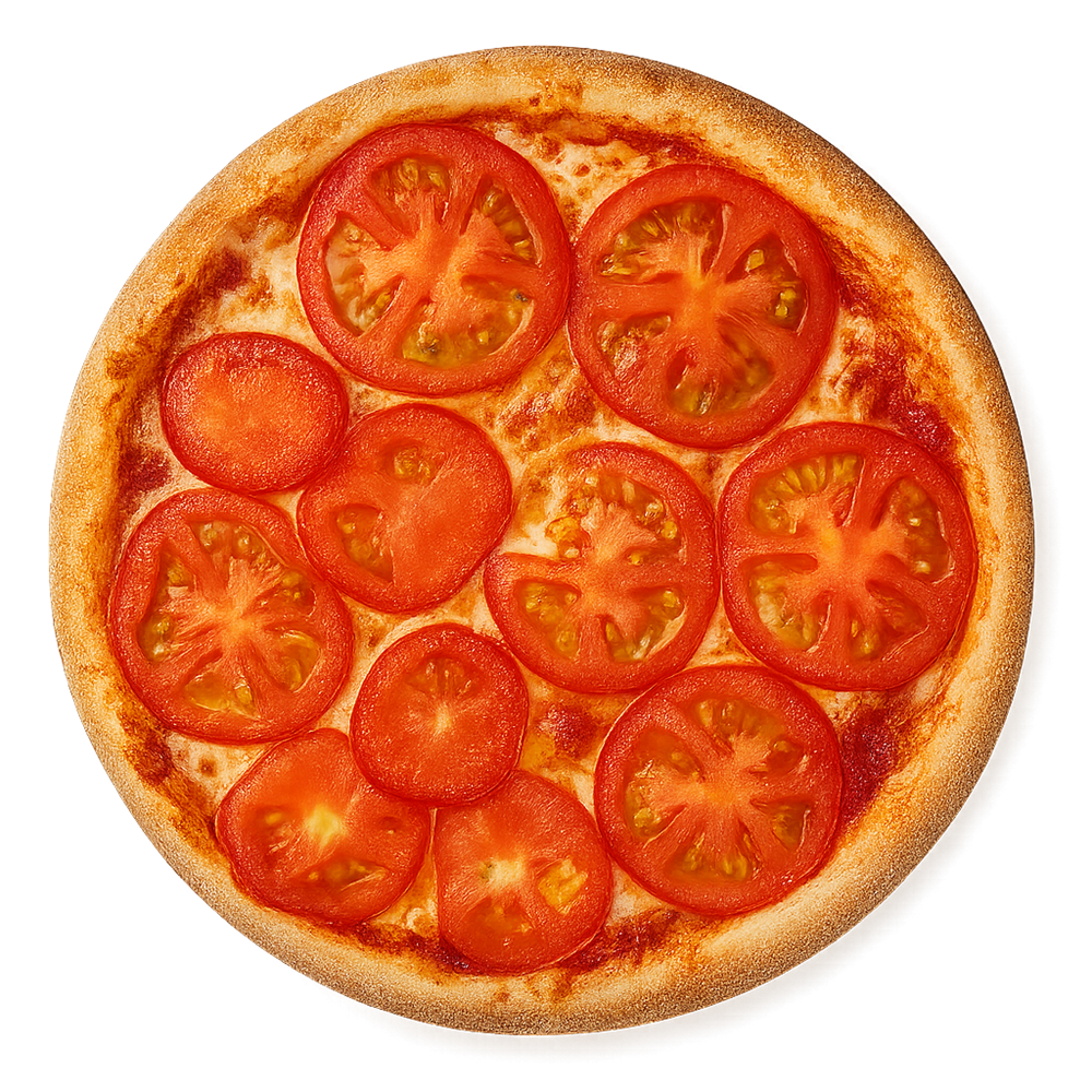 Соус красный, Сыр моцарелла, Свежие томаты.