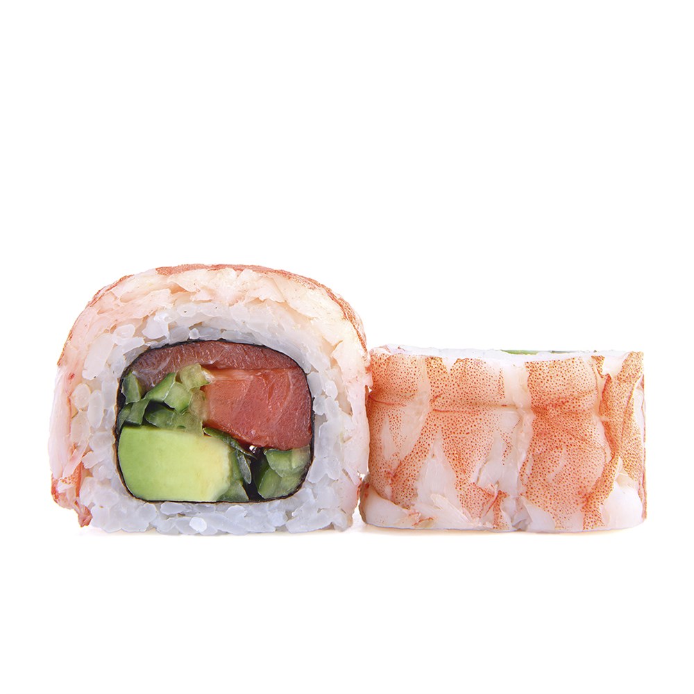 Рис, Норри, Авокадо, Огурец, Лосось копченый, Тигровая креветка.